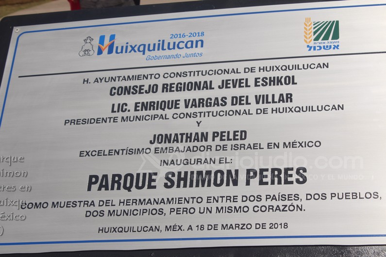 PARQUE PÚBLICO DE HUIXQUILUCAN FUE NOMBRADO SHIMON PERES